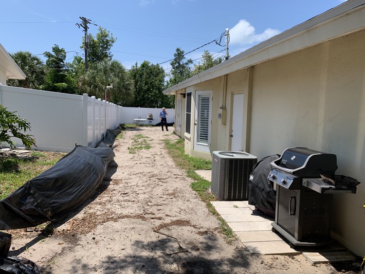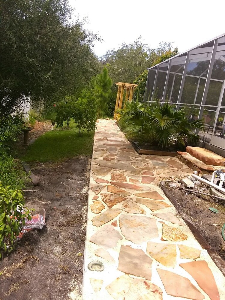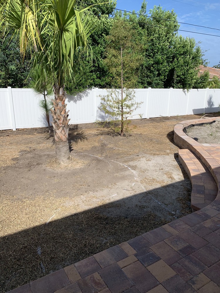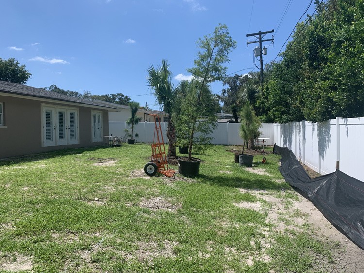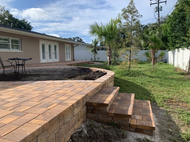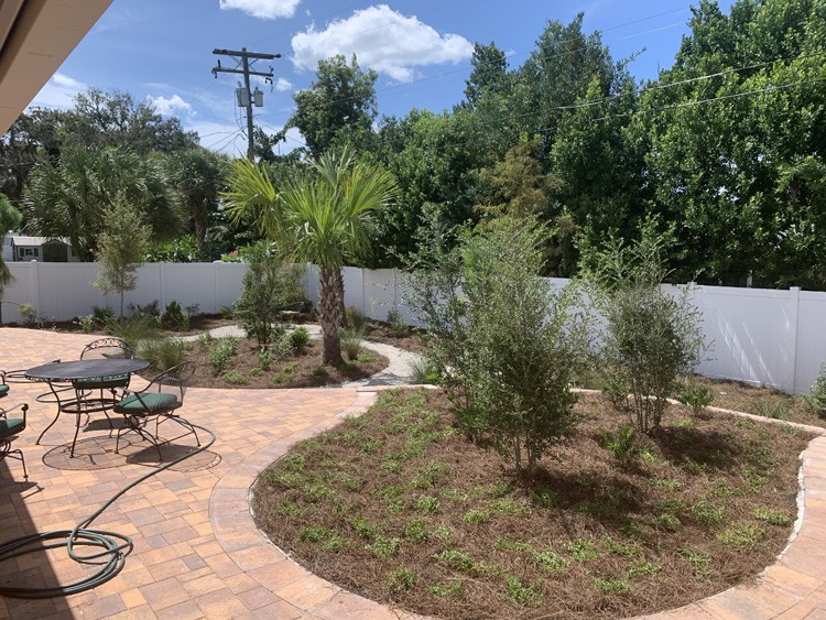 Project description: This project is located in the Largo Bluffs area; what a transformation from a filled in pool to a terraced outdoor living area surrounded by native plants. We were challenged to create patio expanse on a slope that did not feel too large and overwhelming, but could accommodate ten or more people comfortably. This was to then be surrounded by plants native to Florida.