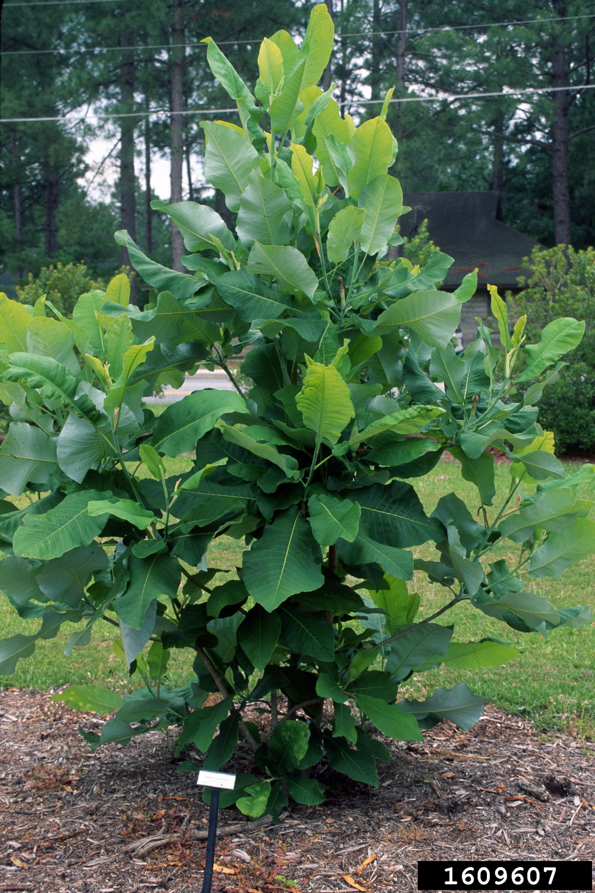 Magnolia ashei is a large shrub or small tree that reaches 10-15 feet high and 8-10 feet wide. It stands out due to its very large leaves. Plant in shade to part shade and average soil conditions. Ideal as an understory tree or specimen in a shady landscape. State endangered.