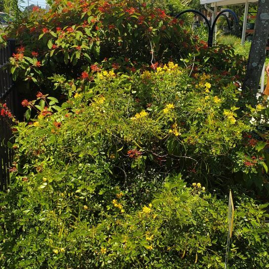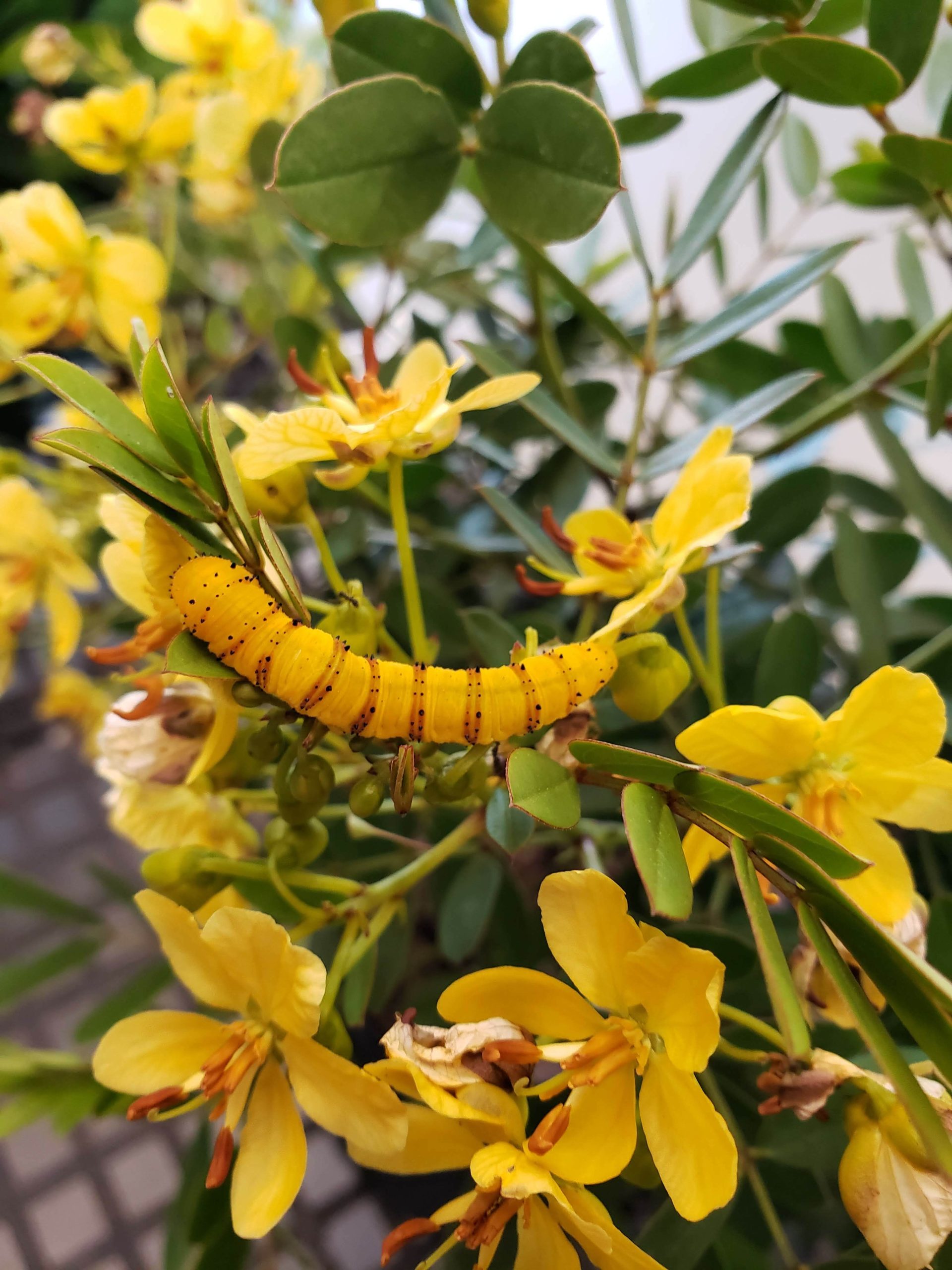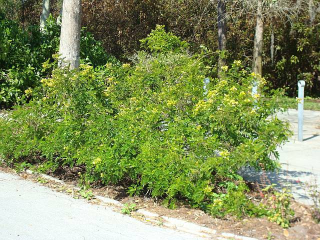 Bahama Cassia,Senna mexicana var. chapmanii, is a sprawling shrub that may reach a height of 3 to 5 ft. It is covered with showy clusters of yellow flowers off and on from fall through spring. The soft compound leaves are attractive and create a lacy textured effect. This plant is a host plant for the Cloudless, Orange-barred, and Sleepy Orange Sulfur butterflies as well as serving as a butterfly nectar plant. This is a south Florida species and needs shelter from frost. Add to the landscape for intense yellow color from the blooms and for bringing clouds of Sulfur Butterflies to the landscape. Plant in partial to full sun in moist to dry soil.