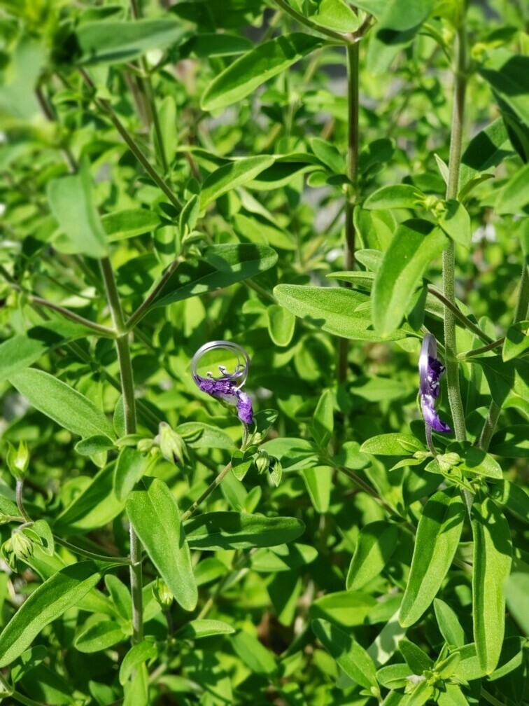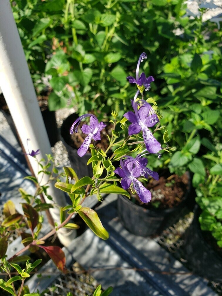 Blue Curls, Trichostema dichotomum, is a common native wildflower in the extensive mint family. It is well adapted to dry drained sites in partial to full sun. It is an annual, but it seeds readily and persists whereever it is planted. Because it seeds aggressively, the seedlings will need to be thinned out in most gardens. It has small but striking blue flowers from summer into the fall. It is a plant attractive to bees, but not butterflies. The plant grows to one to one and a half feet in height and is upright in shape.