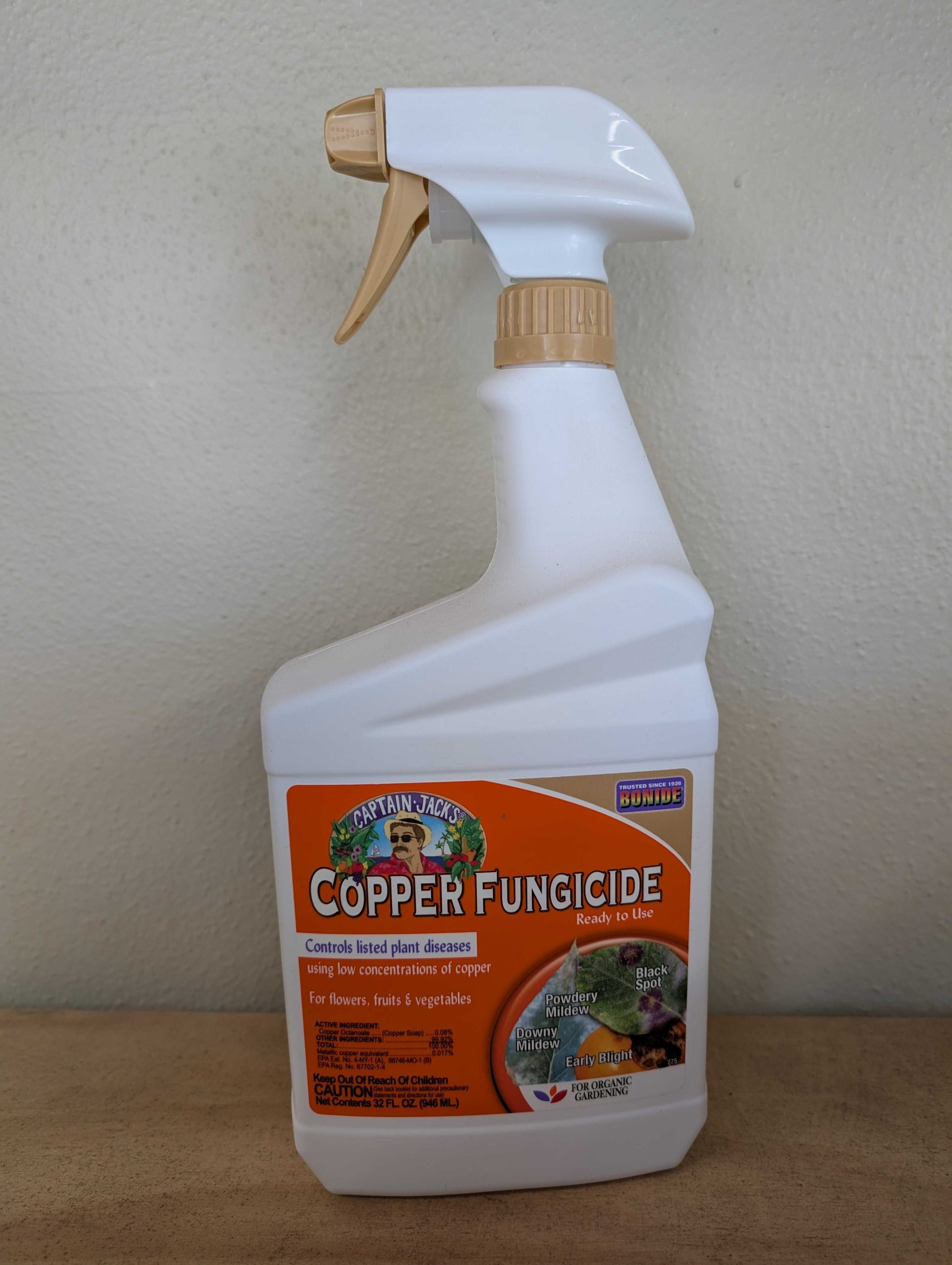 Captain Jack’s Copper Fungicide is effective against common fungal diseases including downy mildew, black rot, leaf spot, powdery mildew, blight, peach leaf curl and more. This product arrives conveniently ready-to-spray. For best results, shake well and attach to a garden hose. Apply thoroughly to the tops and undersides of leaves and all plant surfaces on affected plants. Repeat every 7-10 days as needed. Please see product label for full use instructions.