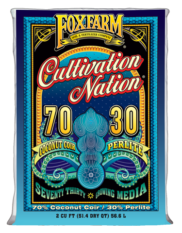 Cultivation Nation® Seventy Thirty Growing Media is a mixture of buffered coconut coir and perlite, blended in the classic ratio of 70:30. Coconut coir is known for its water holding capabilities, and perlite is included to provide air spaces in the media, facilitating aeration and drainage. Cultivation Nation® Seventy Thirty Growing Media is great for use with customized feeding schedules in indoor and outdoor containers.