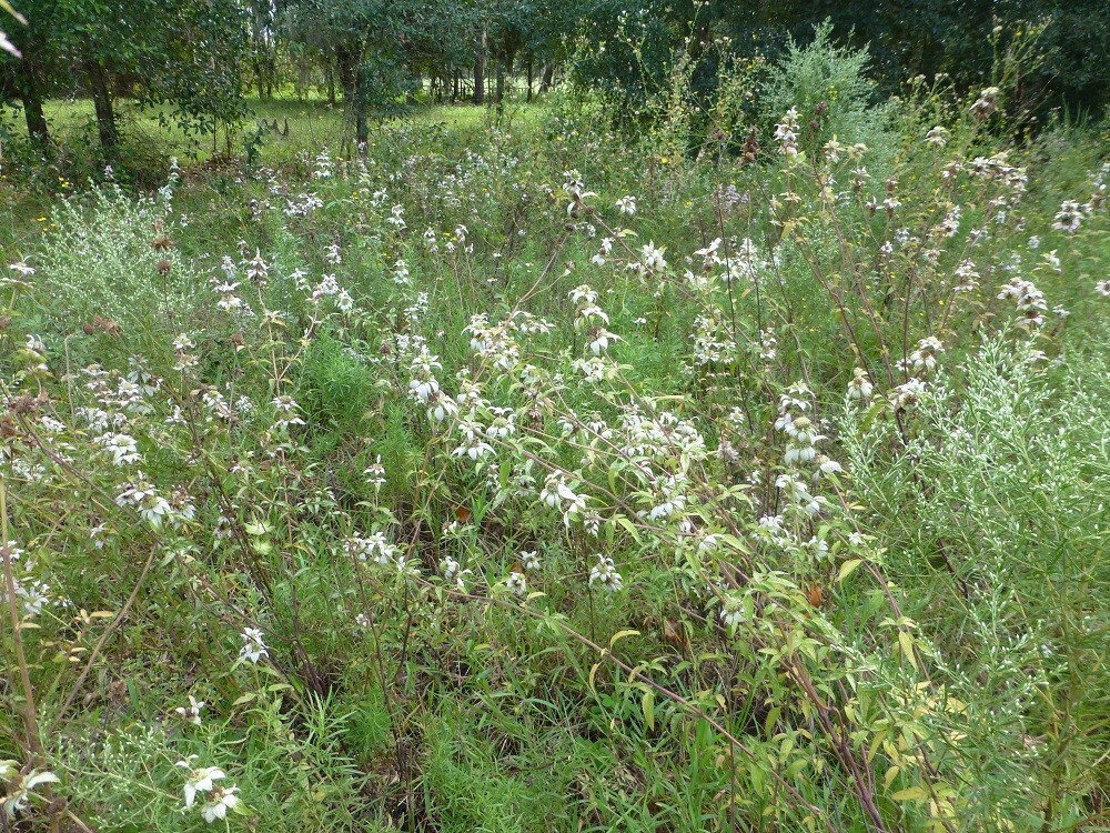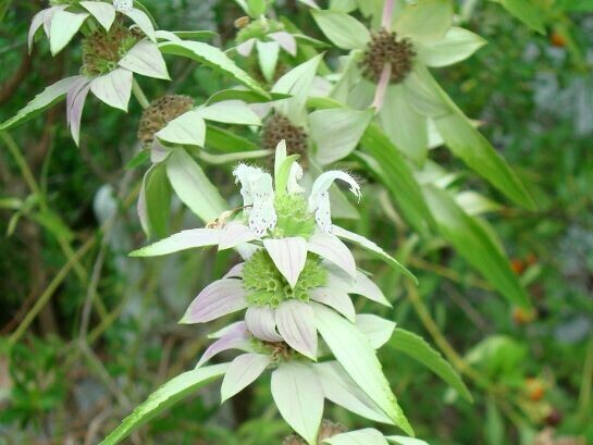 Monarda punctata, is a showy, aromatic, perennial wildflower growing bushy 3-4 ft tall in the summer and fall when it is blooming. It has rosettes of spotted flowers surrounded by bracts that are white, pink, lavender or purple. Give this plant space so that it does not crowd out smaller plants. Will attract a great variety of pollinators including butterflies. It is easy growing in partial sun to full sun in moist to dry sandy soil. It blooms mid summer through the fall.