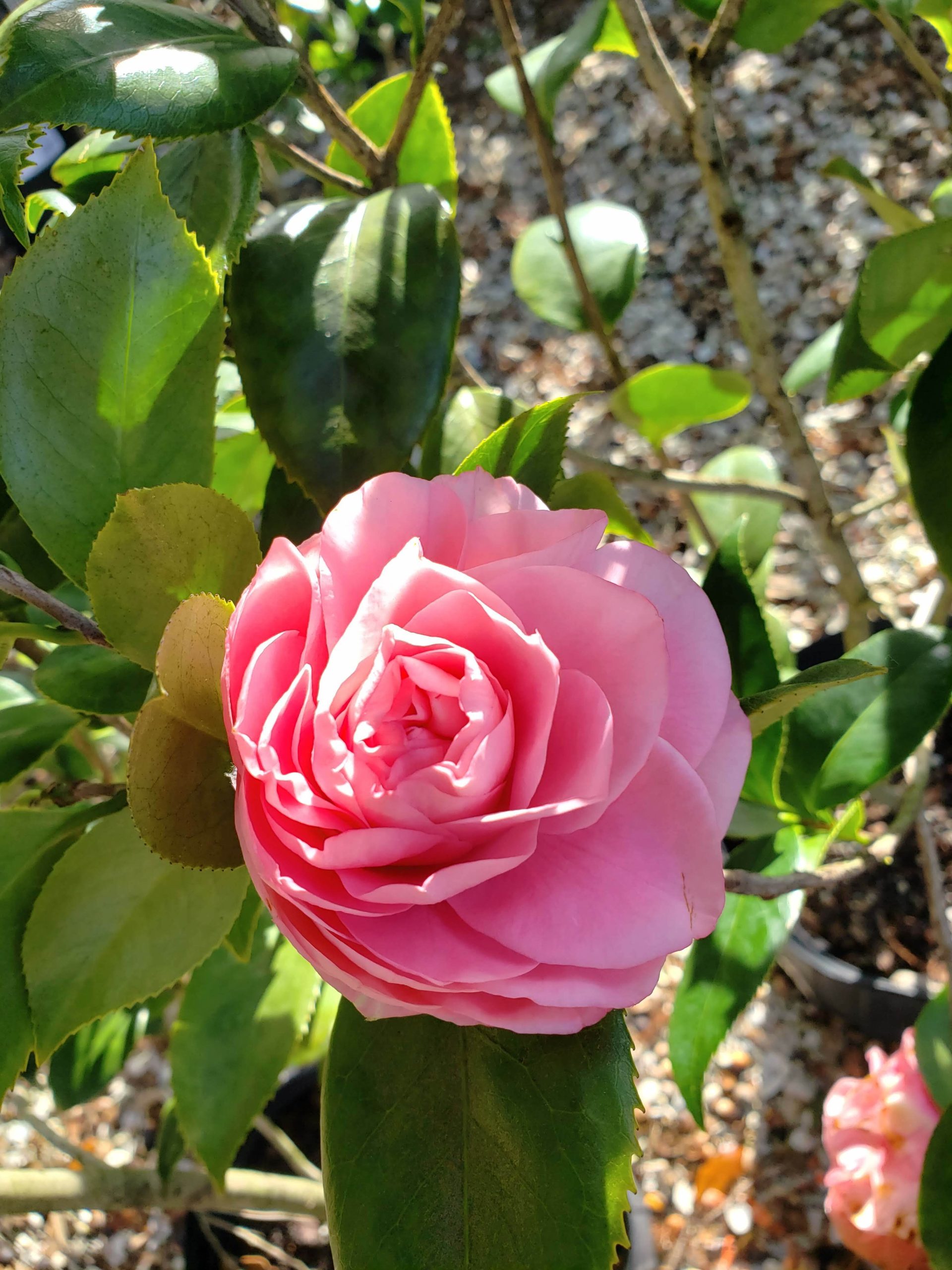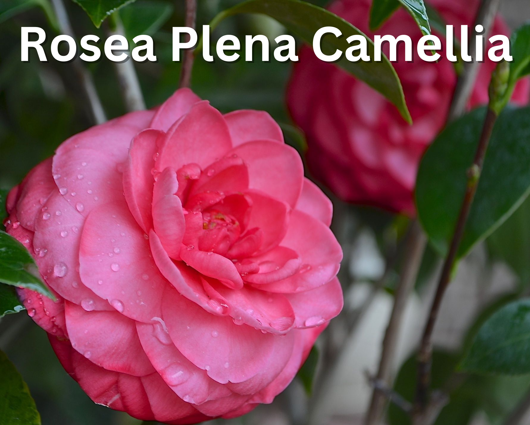 Rosea Plena has large, formal rose-pink double blooms in winter and early spring. It reaches 6-10 feet high and 6-8 feet wide.