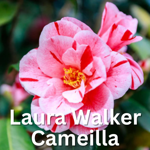 Laura Walker features variegated leaves and flowers. The blooms are double light pink with darker pink streaks. They reach 6-10 feet high and wide.