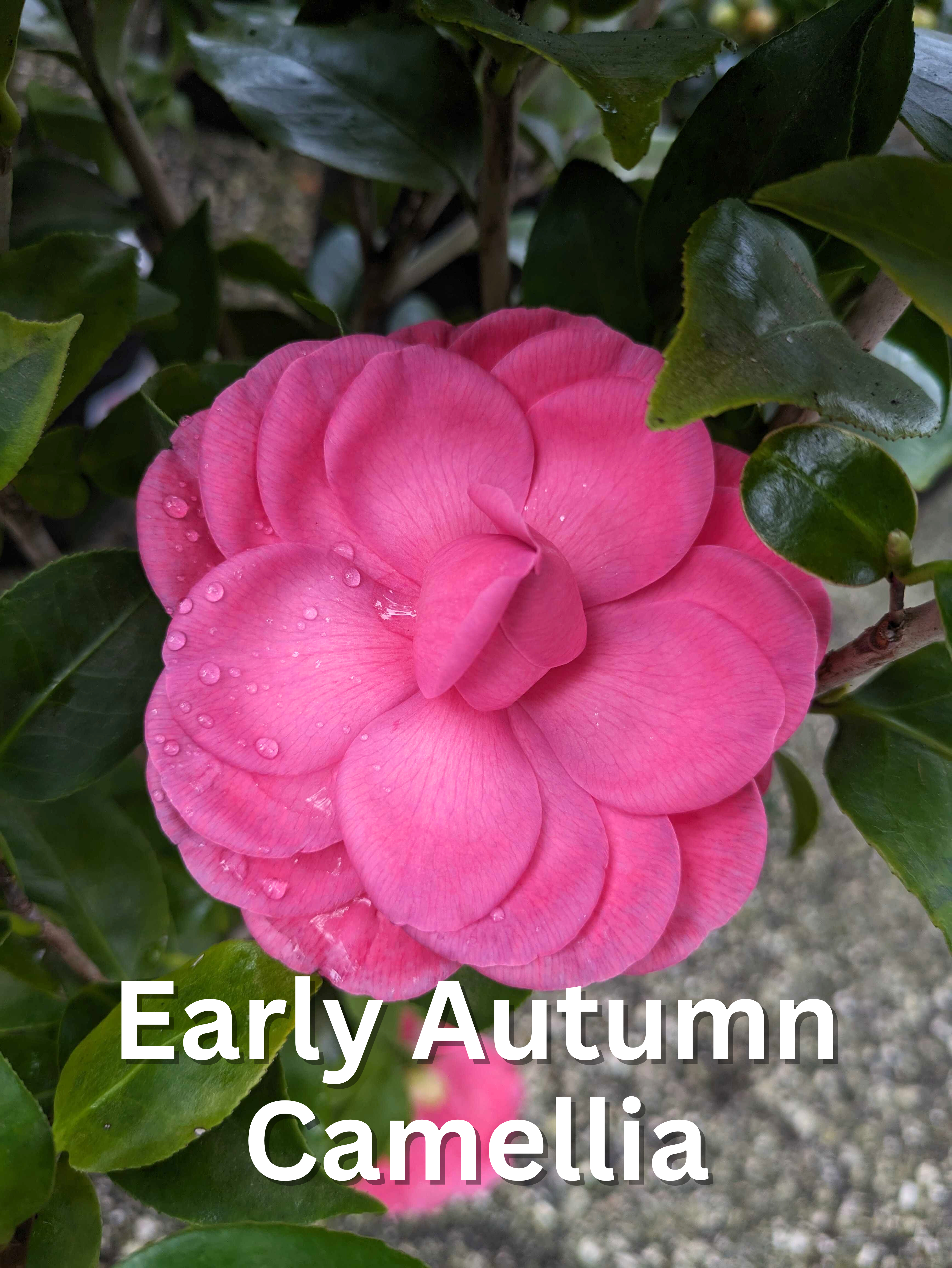 Early Autumn blooms in early fall to late winter with pink double blooms. It reaches 8-10 feet high and 6-8 feet wide.