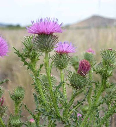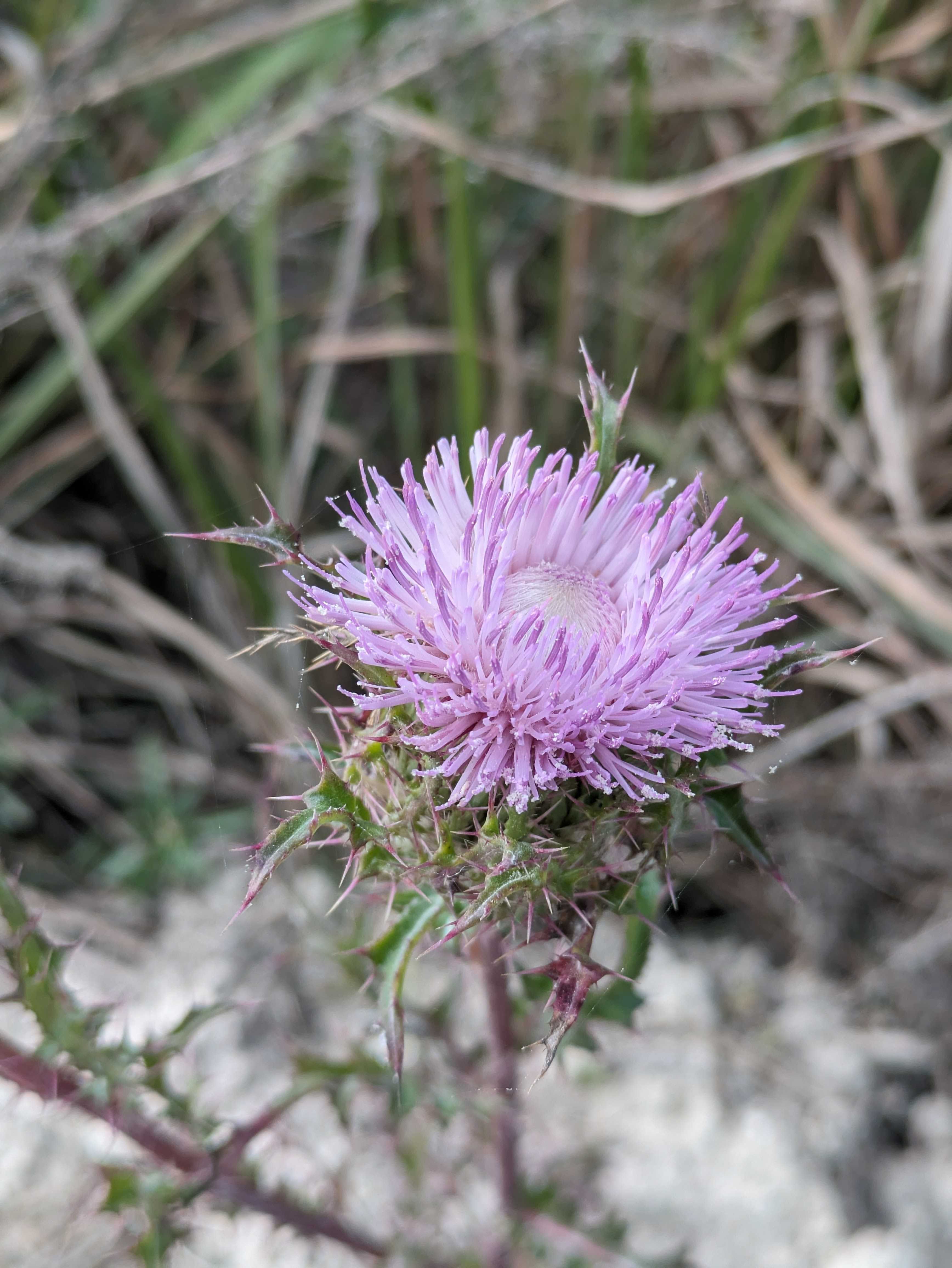 Crisium horridulum is an annual or biennial wildflower reaching 2 feet wide and 1-4 ft tall. The flowers are generally purple but can sometimes be white, pink, or yellow. The spiny basal rosette remains year-round. Flowers in spring and fall, sometimes year-round. Very attractive to pollinators and birds. Plant in part shade to full sun and moist to dry soil. Larval Host for Painted lady and Little metalmark butterflies.