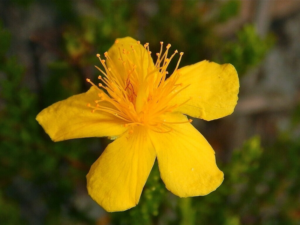 Scrub St. John's Wort (Hypericum tenufolium) is a short lived perennial wildflower that rarely grows taller than 12"-18" tall. It prefers well-drained soils and full sun, and blooms at the tips of stems with small, intricate yellow blooms. Expect flowers throughout the summer. This is a great, low growing drought resistant wildflower and can be used to great effect as a border plant. Good pollinator attraction.
