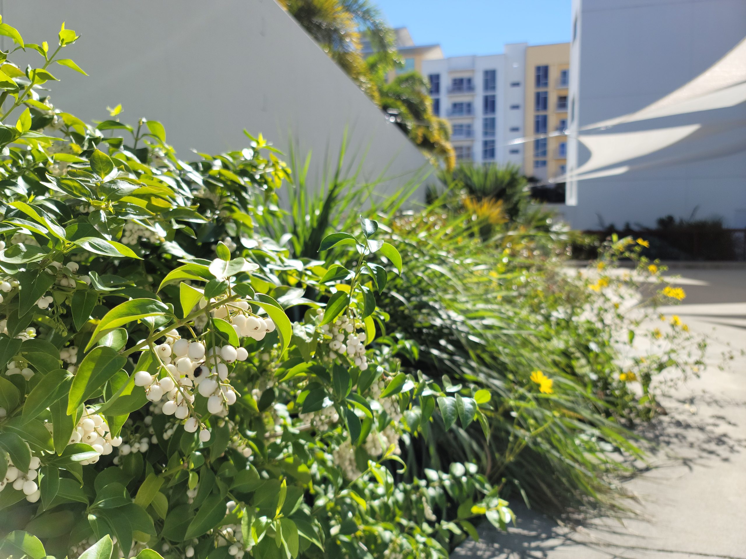 Snowberry, Chiococca alba is a semi-vining flowering shrub that grows up to 10' tall. It prefers partial sun and well-draining soils, and is very drought tolerant once established. It blooms through most of the year (Feb-Sep) with small, cream colored flowers and produces stark white berries that feed birds and other wildlife. Consider supporting this plant with a trellis or other sturcture. Larval host for the Miami blue butterfly (Cyclargus thomasi) and Snowberry clearwing moth (Hemaris diffinis).