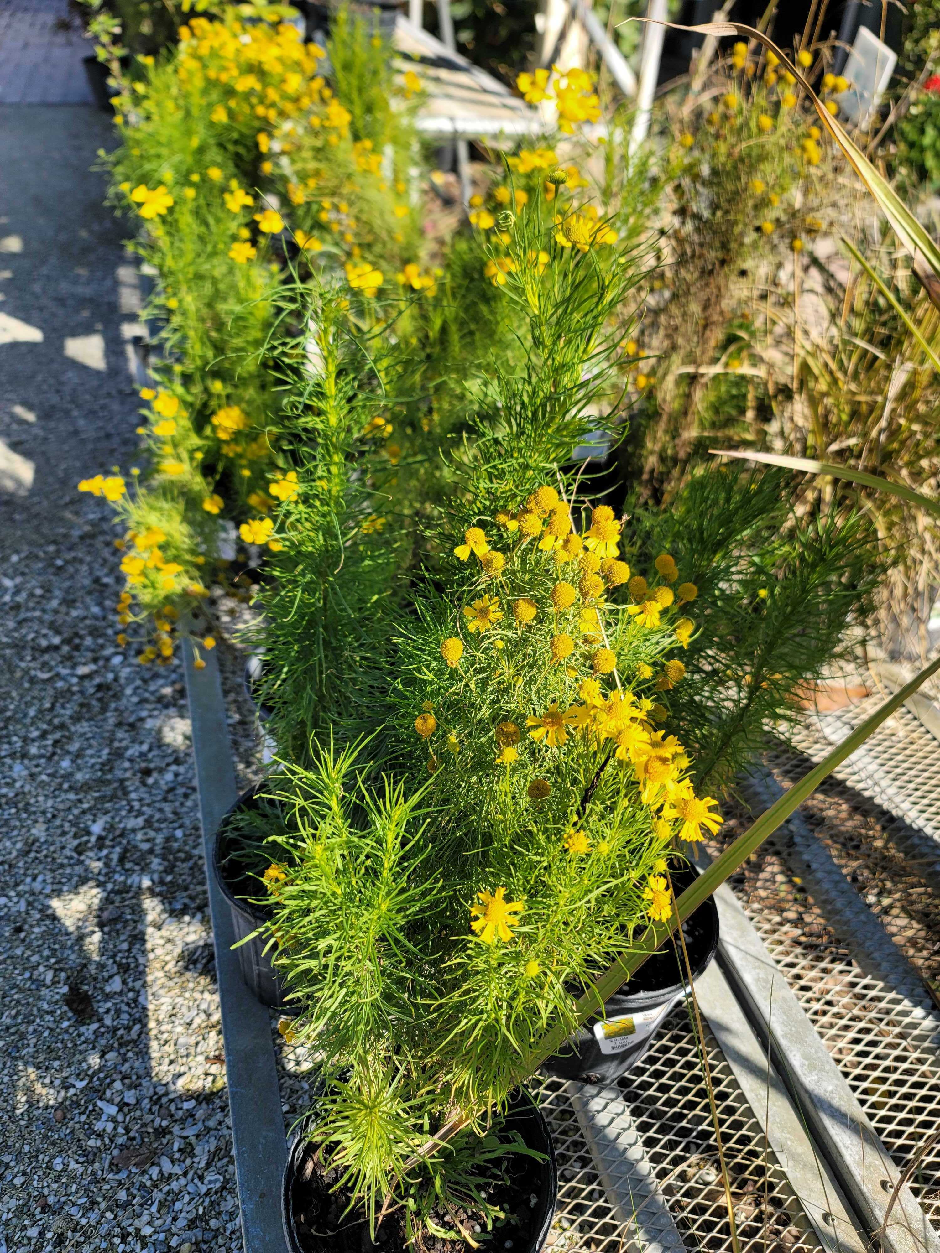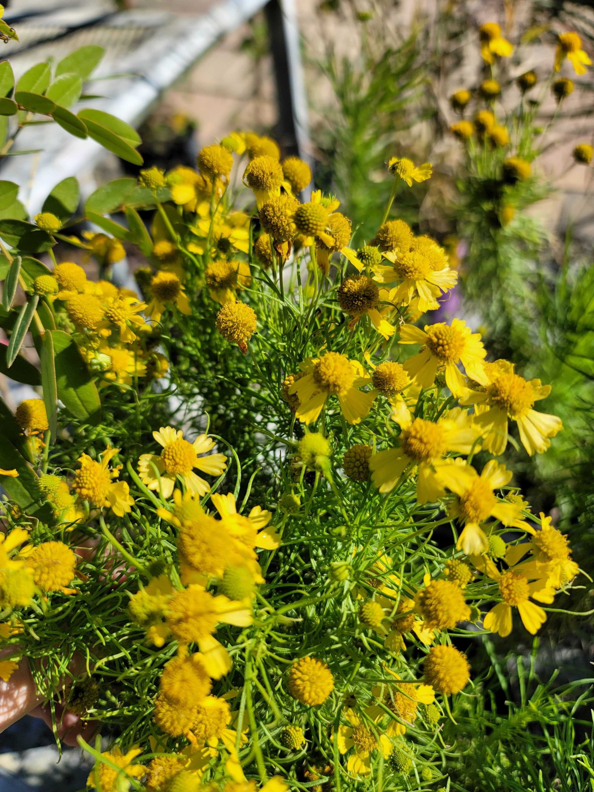 Spanish Daisy, Helenium amarum, is a perennial wildflower that generally blooms in spring but may flower throughout the warm months. Also called "Southeastern Sneezeweed" due to it's historical use as snuff. Prefers full sun and adaptable to moist or dry soil. Stems can reach 3 feet but often lays down along the ground.