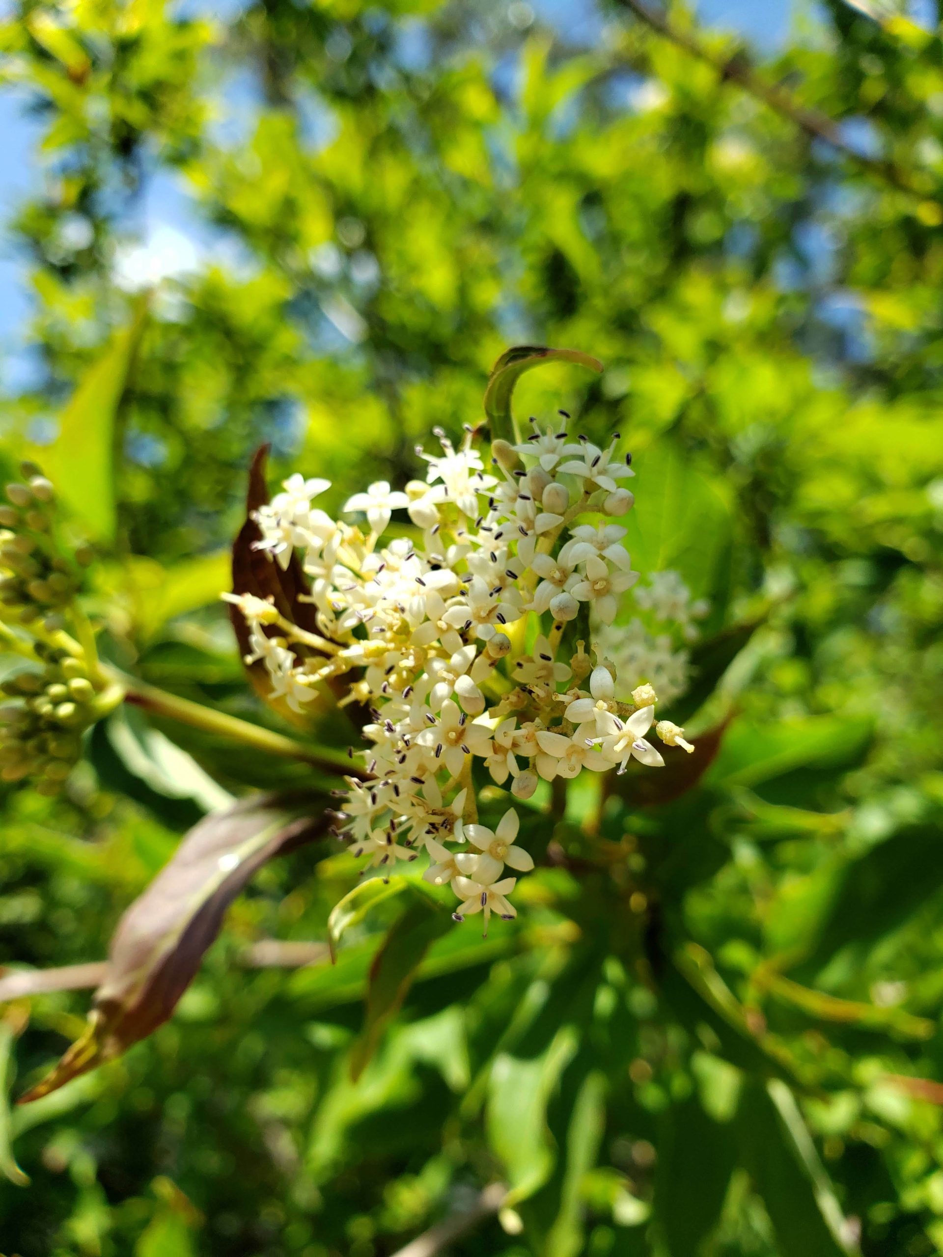 Swamp Dogwood (Cornus foemina) grows to 12 to 15 feet tall and is a deciduous shrub or shrubby small tree. The foliage is similar in size and shape to Flowering Dogwood and it can show a touch of fall color with some fall chill. Small, white flowers make up the convex to flat-topped flower clusters that produces an attractive display in the spring. The fruits are bright blue and add subtle ornament as well as attracts a variety of birds. The tree is also a host plant for the Spring Azure Butterfly. This is the most widely and naturally distributed native Dogwood in Florida, growing in wet hammocks and swamp forests, from the Everglades and northward through the state. It will tolerate short periods of inundation with water. Plant this small tree in full sun to bright shade where a beautiful specimen tree or a woodland effect is desired in moist to wet soils.