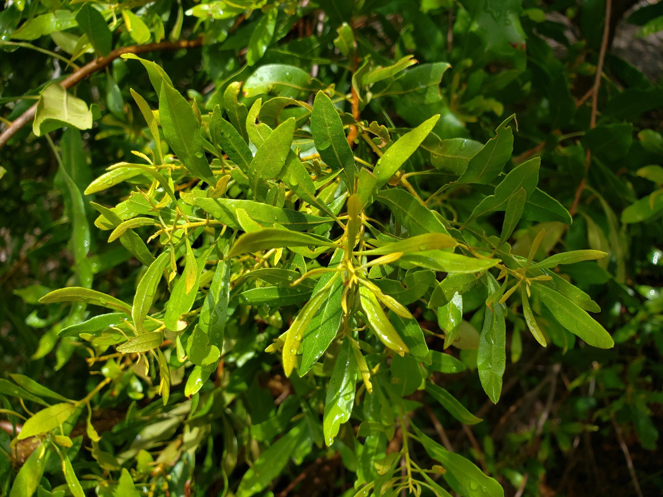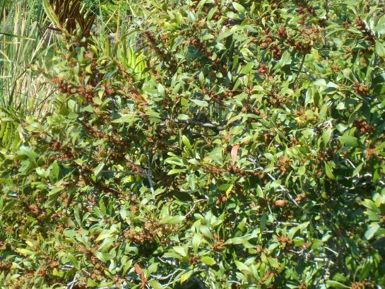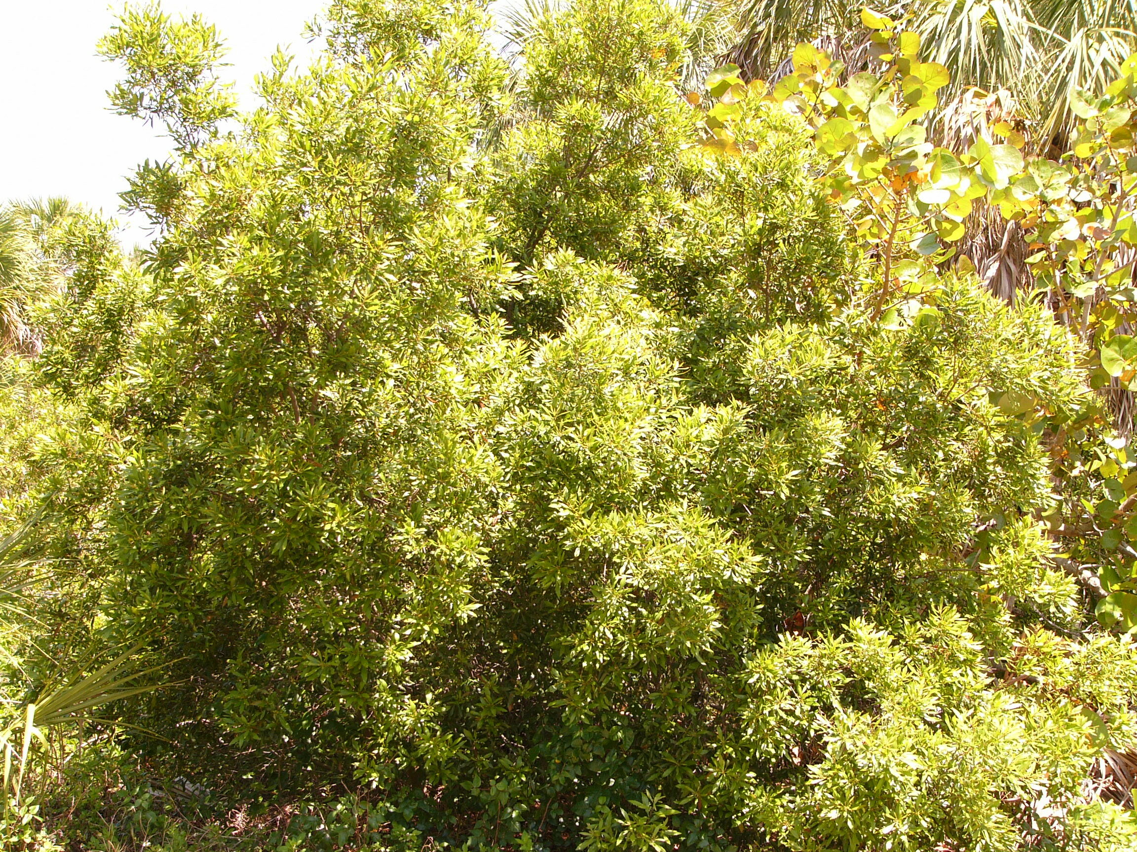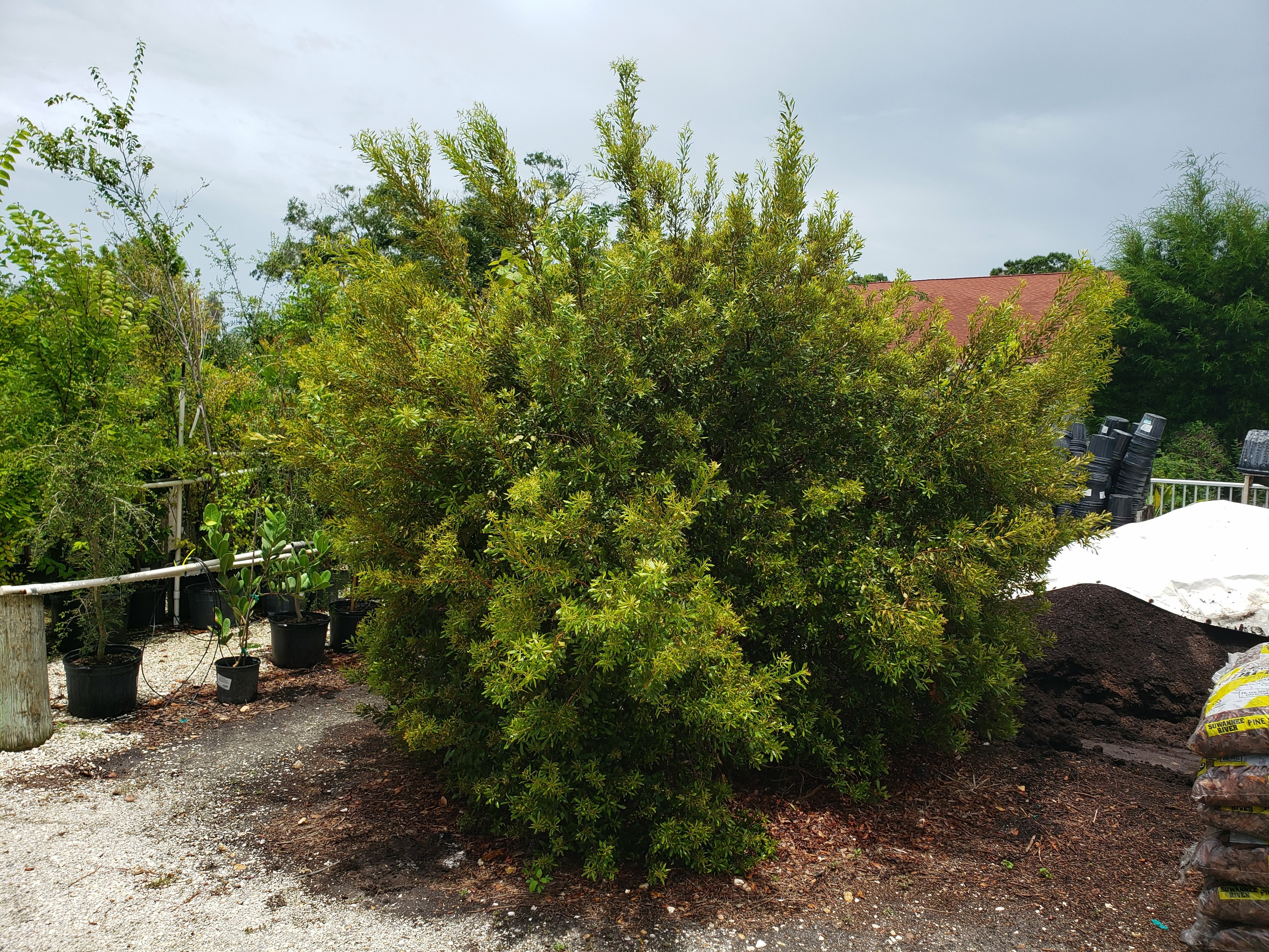 Wax Myrtle, Myrica cerifera, is a dense, multi-trunked, fast growing evergreen shrub or small tree. It can reach up to 20 ft. or more in height. and it grows quite broad. Give it plenty of room for its spread. There both standard and dwarf types available. The light olive-green foliage has a very pleasant Bayberry fragrance.. This is a common native plant that is popular in landscape because of its density and hardiness as a screening plant and it is great for attracting a diversity of birds. For birds it is a shelter plant and a source of food from the tiny waxy berries on the female plants. Birds from the smallest to larger species relish the tiny berry! It is salt air tolerant and able to tolerate short periods of salt water flooding. Plant in moist to average soil in partial to full sun and be sure to keep Wax Myrtle moist until it has a had a couple of months of establishment to become self sufficient. Be sure to have female and male plants so they will produce berries!