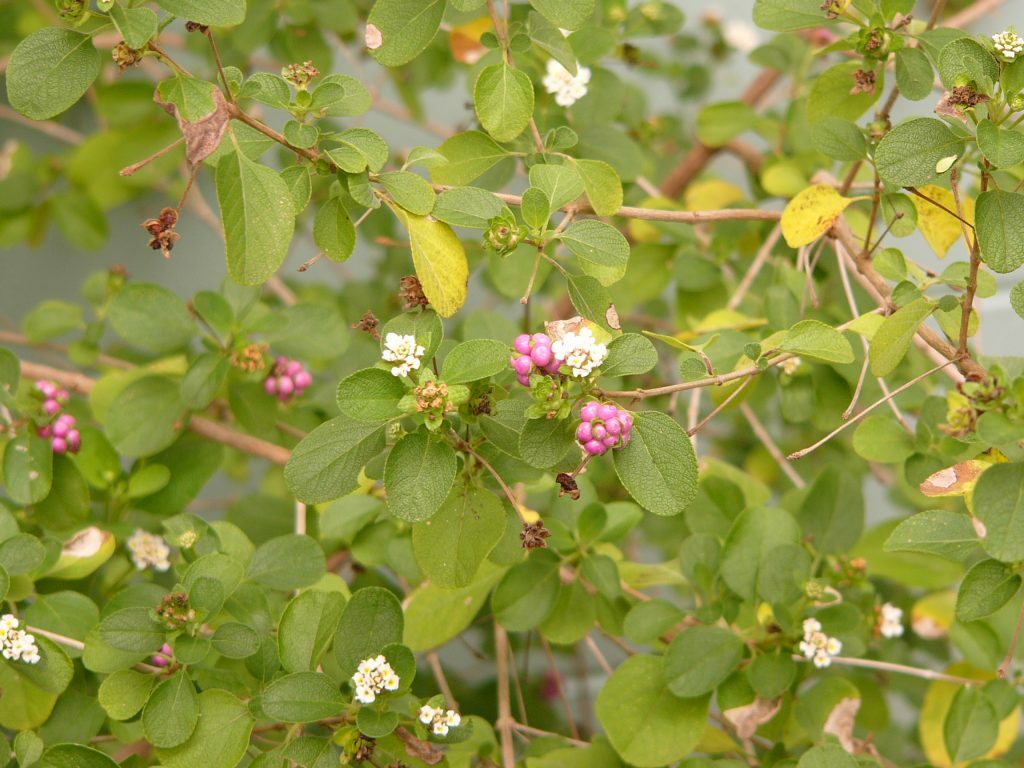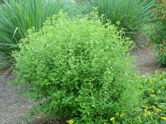 Button Sage also know as Wild Sage, Lantana involucrata, is a perennial shrub that grows 3 to 5 feet in height and up to 3 feet in spread. The soft leaves are a dusty gray / green. It produces small white flowers in clusters, followed by a tight cluster of purple berries. Button Sage is attractive to pollinators including butterflies and birds. This is the only Lantana species native to central Florida and deserves respect for its hardiness, drought tolerance, and ease of growth. This can be used as a small to medium size shrub in landscape application.