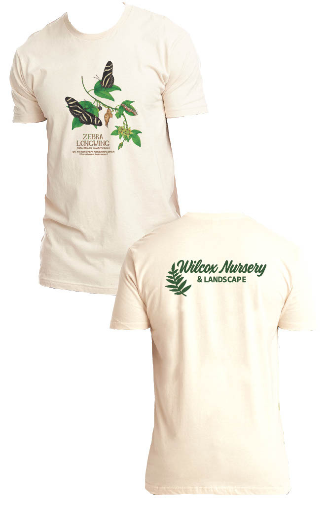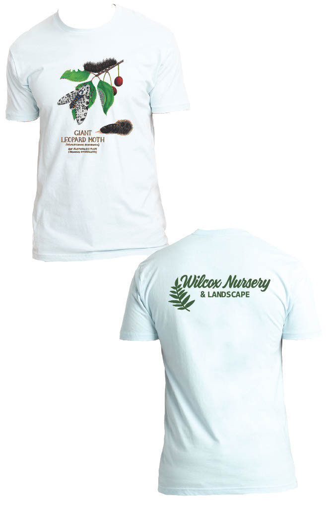 Want to show your love for caterpillars? Grab one of our Year of the Caterpillar Theme T-shirts! Featuring one of two designs by Kate Dolamore, each shirt showcases each of the stages of development of these cozy critters, as well as one of their host plants. The Wilcox Nursery logo is shown across the back. The two designs are: