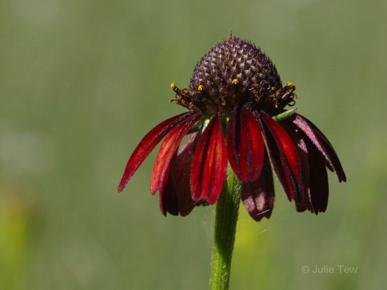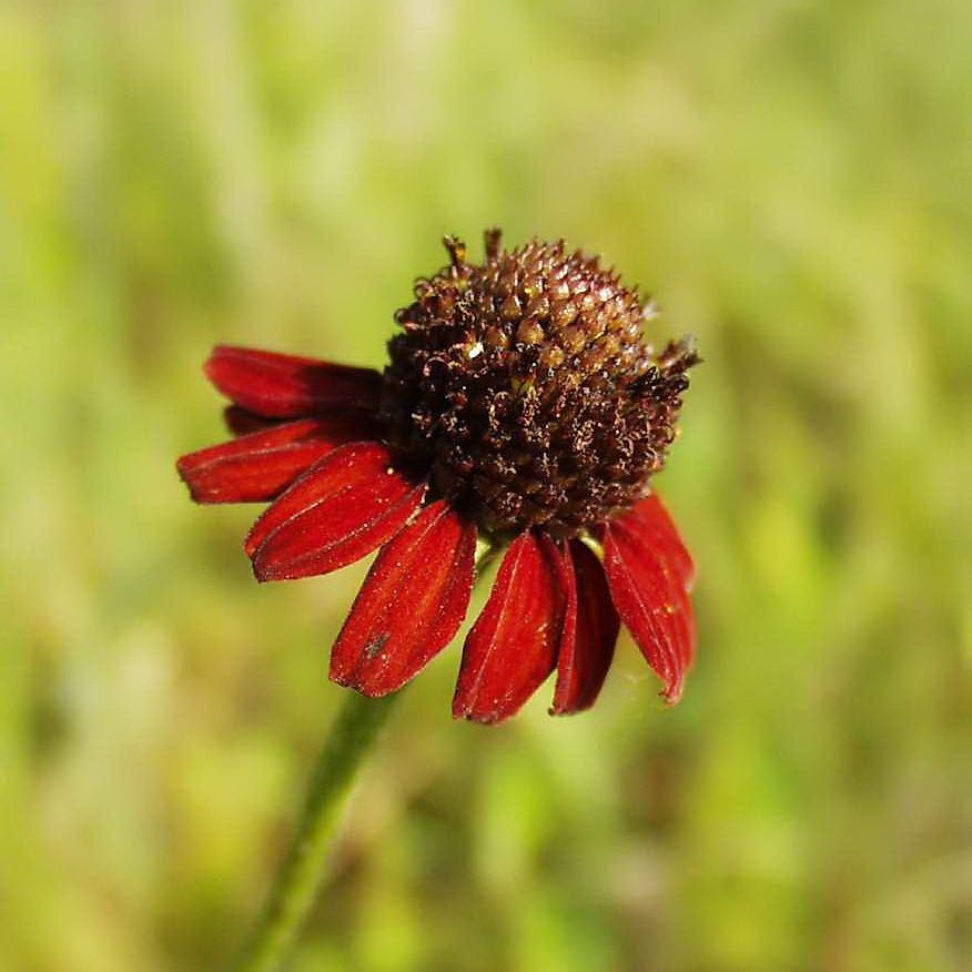 Rudbeckia graminifolia is an annual to short-lived perennial wildflower that reaches 18-24" high and 8-12" wide. The deep red flowers set this apart from most native coneflowers. Plant in moist to average soil and full sun. Rarely found in cultivation.