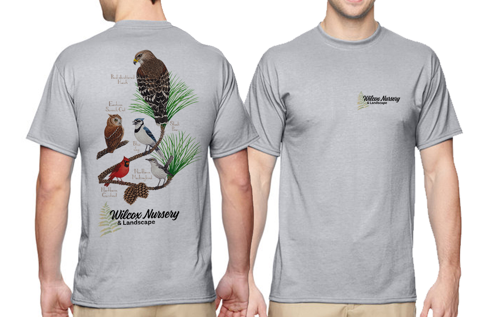 2024 is the Year of the Bird here at Wilcox. We have been focusing our plant selection, events, and educational outreach on landscaping for birds. For our theme design, we chose 5 birds that you are likely to see in your own landscape perched on a slash pine. The design was created by Florida artist Kate Dolamore.